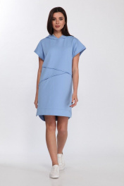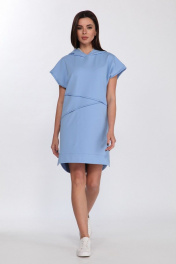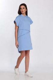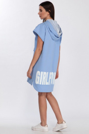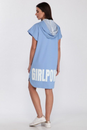 Платье свободного кроя из хлопка с капюшоном и контрастной печатью Faufilure C1181 голубой