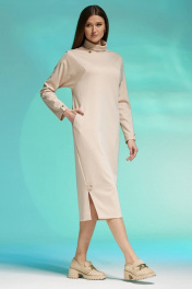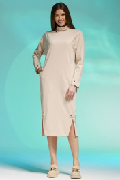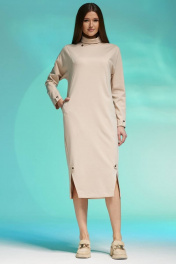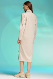 Комплектация: платье Силуэт: прямой Тип ткани: трикотаж Вырез горловины:воротник-стойка Длина изделия: по спинке - 118см Длина рукава: 62 см, рукав цельнокроенный, с имитацией квадратной проймы. Дополнительное описание: платье с подрезами по переду и карманами. По низу платья- разрезы. По низу рукавов и разрезов- декоративные паты с кнопкой.
