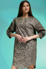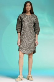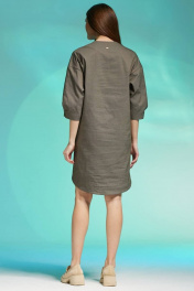 Комплектация: платье Силуэт:свободный Тип ткани: джинс Вырез горловины: округлый Длина изделия: по спинке - 98 см Длина рукава:от горловины- 60 см, рукав спущенный, длиной 3/4 и застежкой на пробивную кнопку. Дополнительное описание: платье с боковыми карманами, низ платья фигурный, с застежкой на пробивные кнопки .