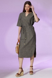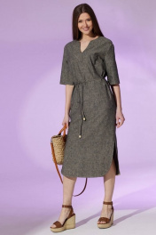 Платье свободное из льна с контрастной отделкой и карманами Faufilure C1450
