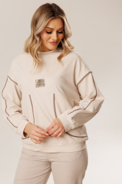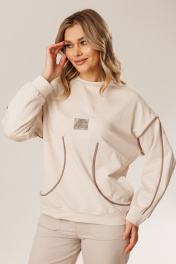Джемпер из качественной трикотажной ткани, с декоративными отделочными кантами, нашивкой и фигурным подрезом по полочке. Рукав спущенный, на манжете.