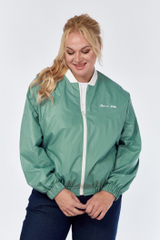 Куртка-ветровка свободного силуэта с застежкой на молнию. Выполнена из легкой плащевой ткани.По переду расположены наклонные прорезные карманы с листочкой. Спинка с отлетной кокеткой. Горловина с втачной стойкой из трикотажного полотна. По низу куртки и по низу рукавов притачная планка и манжеты с эластичной тесьмой внутри. Куртка на подкладке из 100% хлопка. Длина куртки по центру спинки 61см (р. 52-54), 63,0см (р. 56-60). Длина переда от плечевого шва 66см (р. 52-54), 68,0 (р. 56-60). Длина рукава с учетом манжеты 58см.