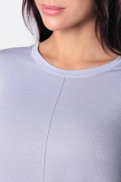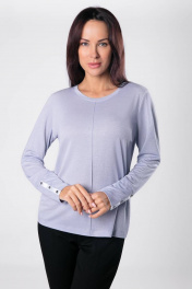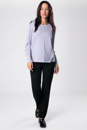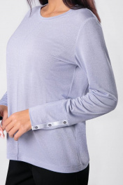 Джемпер из тонкого трикотажного полотна с добавлением нитей люрекса,которые придают ему деликатное сияние.На передней детали вертикально прострочена декоративная складка.Длинный рукав с декором по низу.Отличное предложение для точечного обновления гардероба , в том числе нарядного.
