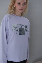 Уютный женский джемпер с печатью длиной до линии бедер. Модель прямого силуэта подходит для большинства типов фигур.В боковых швах джемпера разрезы длиной 4 см.Модель приятная к телу и на ощупь, не мнется, легкая и практичная, не требует специального ухода.