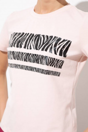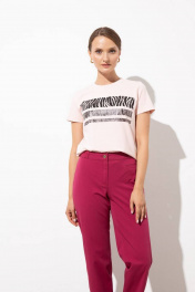 Джемпер женский прямого простого кроя с коротким рукавом и печатью спереди. Горловина и низ рукавов обработаны тканью, что помогает сохранять форму горловины и рукавов в процессе носки. Данная модель будет эффектно смотреться как с юбками, так и с джинсами, брюками. Джемпер-футболка хорошо сидит на женщинах и девушках с любым типом фигуры и легко сочетается с любыми вещами из гардероба - подойдет как к деловому стилю так и для прогулок по городу.Модель приятная к телу и на ощупь, не мнется, легкая и практичная, не требует специального ухода.