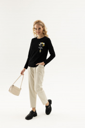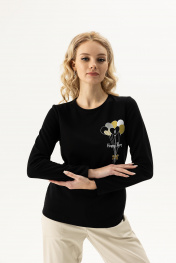 Стильный джемпер прилегающего силуэта с длинным рукавом. В качестве декора нанесена оригинальная печать. У модели имеется округлая линия горловины .Рукава у модели втачные, длинные. Джемпер изготовлен из качественного, плотного материала ,обладает удобным классическим прямым кроем и обеспечивает полный комфорт в процессе носки. Модель невероятно удобна и практична. Лонгслив вещь универсальная и будет прекрасно сочетаться с джинсами или юбкой,брючным костюмом и даже со спортивной одеждой.