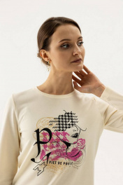 Стильный бежевый джемпер с длиной на бедрах и яркой печатью Femme & Devur 30776 2.2F(170)