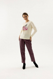 Стильный джемпер прилегающего силуэта с длинным рукавом. В качестве декора нанесена оригинальная печать. У модели имеется округлая линия горловины .Рукава у модели втачные, длинные. Джемпер изготовлен из качественного, плотного материала ,обладает удобным классическим прямым кроем и обеспечивает полный комфорт в процессе носки. Модель невероятно удобна и практична. Лонгслив вещь универсальная и будет прекрасно сочетаться с джинсами или юбкой,брючным костюмом и даже со спортивной одеждой.