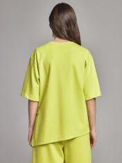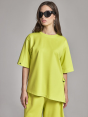 Универсальный джемпер в стиле Спорт-шик свободного силуэта с асимметричным низом. Сбоку у модели имеется разрез с полукольцами и завязкой. Рукава у джемпера рубашечного кроя со спущенной линией плеча длиной до локтя. Данный джемпер идет в комплексте с бермудами 90077.1.46F. За счёт уникальных авторских лекал дизайнерский летний костюм выигрышно смотрится на фигурах любых размеров. Идеален для прогулок, занятий спортом, для активного отдыха, поездок на природу и т.д. Данный комплект можно комбинировать в разные образы, он станет одним из любимых в Вашем гардеробе!