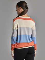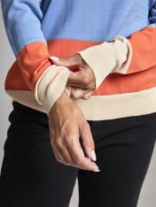 Яркий вязаный джемпер из вискозы и нейлона. Лаконичный дизайн и отличная посадка по фигуре делает свитер универсальным. Чуть заниженная линия плеч, резинка на рукавах, подоле и горловине придают модели женственный вид, подчеркивают плечи и шею. Демисезонный джемпер будет базой для создания комплектов на прогулку, университет, в офис. Хорошо сочетается с вещами в стиле casual и расслабленном стиле. Носите полосатый свитер сольно или под блайзеры, кожаные куртки и безрукавки.