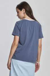 Джемпер-футболка классического фасона, прямого кроя, с коротким рукавом и округлым вырезом-резинкой. Футболка выполнена из мягкого хлопкового полотна средней плотности приятного к телу. Короткие рукава с заваротом.Универсальная модель с принтом отлично подойдет для любого образа и станет необходимой вещью в вашем гардеробе. Джемпер будет удобно носить навыпуск или заправлять, отлично сочетается с юбкой, брюками с джинсами, а также можно одеть под пиджак, жакет или кардиган.