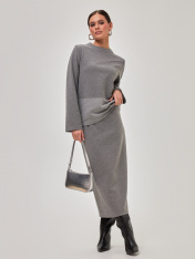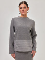 Дымчатый джемпер расширенного книзу силуэта с воротником стойкой. Застегивается джемпер сзади на тесьму-молнию. Свободный крой джемпера идеальны для любого типа фигуры. Кофточка станет идеальным выбором для повседневной носки или как офисный вариант.