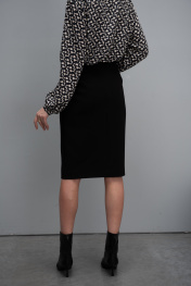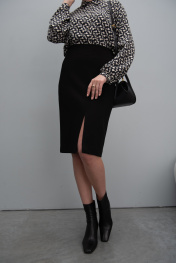 Элегантная юбка-карандаш черного цвета с разрезом подходит для повседневных образов осенью, зимой и весной. Полуприлегающий силуэт позволяет подчеркнуть фигуру, а благодаря выточкам юбка хорошо садится по фигуре. Модель застегивается на потайную молнию, которая находится сзади. Юбка приятная на ощупь и к телу, не требуют специального ухода.Эта универсальная юбка на подкладке является базовой вещью в гардеробе каждой женщины.