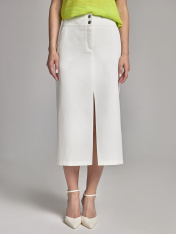 Уникальная женская юбка-миди без подкладки стала модным трендом 2024 года.Модель имеет прямой крой, что делает ее универсальной для женщин всех возрастов. Юбка-карандаш с разрезом спереди и чуть расклешонным кроем, обеспечивает удобство движения , а завышенная талия удлинняет ноги и подчеркивает женственность фигуры. Застегивается модель на молнию и болты, а карманы спереди и сзади добавляют практичности модели и универсальности.. Такая модель идеально сочетает в себе стиль и комфорт и подходит как для повседневной носки под лодочки , кросовки или шлепанцы, так и для особых случаев под туфли и босоножки на высоком каблуке.