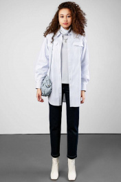 Туника - рубашка, очень популярна среди всех вещей женского гардероба. Прямого силуэта. Длина ниже линии бедер. Воротник стояче-отложной, по переду изделия расположена планка с застежкой на петли и пуговицы и два клапана. По спинке туники кокетка, которая переходит на перед и позволяет добиться оптимальной посадки изделия. Рукав длинный рубашечный, с манжетой на петли и пуговицы. Туника сочетает в себе практичность рубашки и изящество платья, поэтому она нужна любой моднице.