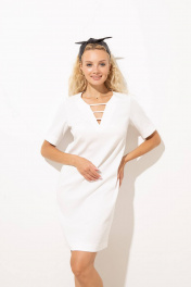 Классическое белое платье прямого силуэта с V-образным вырезом горловины. Благодаря своему простому крою и вытачкам спереди подойдет для женщин с разным типом фигуры.Рукав у модели короткий 27 см , со спущенным рукавом и манжетой 3,5 см. Оригинальный вырез с тремя бейками добавит элегантности и женственности в Ваш образ.Белое платье идеально решит задачу образа для прогулки, романтического свидания. Отлично смотрится как с кроссовками, так и с утонченной шпилькой или открытыми сандалиями. Образ можно дополнить пиджаком или джинсовкой, что значительно разнообразит возможности использования платья. Это стильное платье станет вашим любимым и прекрасно подойдет для повседневных и вечерних образов.