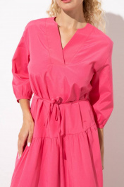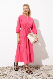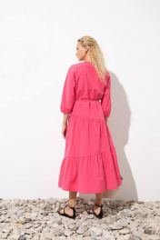 Универсальное длинное платье с воланами расширенное книзу. Платье длиной ниже колена имеет пояс, с помощью которого можно скорректировать силуэт и подчеркнуть талию. Рукав рубашечный длиной 3/4 и сборка по низу. Свободный крой делает ношение платья максимально комфортным и удобным, подходит под любой тип фигуры, скрывая недостатки и подчеркивая достоинства. Насыщенный розовый цвет и воланы добавляют образу романтичности и женственности. У модели фигурный V-образный вырез. Такая горловина подойдет практически любой женщине, ведь она способна визуально удлинить шею и лицо. Глубокий треугольный вырез наглядно сделает стройнее всю фигуру. Платье приятное к телу и на ощупь, в нем не жарко, хорошо носится, легко стирается, быстро сохнет, не требует специального ухода.