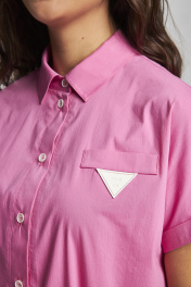 Современное стильное платье-рубашка свободного силуэта отлично впишется в женский гардероб на каждый день. У модели цельнокройный короткий рукав и воротник-стойка. В боковых швах имеются карманы, а по нижу платья разрез со шнурком.Такая модель платья отлично впишется в женский гардероб на каждый день. Элегантное простой фасон и натуральная ткань делает модель по-настоящему универсальной для любого случая жизни