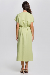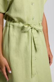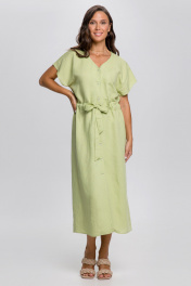 Льняное платье-халат с коротким рукавом расширенного книзу силуэта длиной ниже середины колена на 12 см. Застегивается модель на пуговицы.Платье миди длины с V-образным вырезом органично открывает взгляду область декольте,придает платью женственности и элегантности. Микс льна с вискозой- легкий и воздушный материал, который идеально подходит для летнего платья. Летящие рукава , элегантный пояс и широкая кулиска подчеркивает достоинства фигуры и создает женственный и романтичный образ.