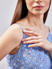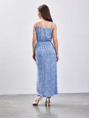Летнее женское платье на тонких брителях станет идеальным вариантом для создания привлекательного женского образа. Женственный силуэт и струящаяся ткань создают визуальную легкость образу, позволяя всегда выглядеть стильно и привлекательно. Нежный цветочный принт станет прекрасным выбором для женщин и девушек молодого возраста, позволяя выглядеть привлекательно. Простой силуэт платья дополнен разрезом спереди и сборкой на уровне талии. Выполненное из натуральной вискозы модель обладает прекрасно гигроскопичностью. Приятная на ощупь ткань не вызывает дискомфорт и аллергической реакции во время носки.