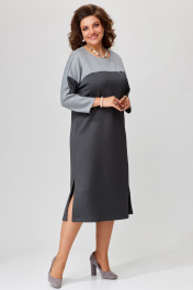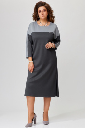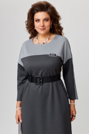 Демисезонное трикотажное платье с поясом и глубоким разрезом Fita 1741 графит