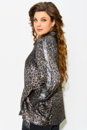 Блуза полуприлегающего силуэта с леопардовым принтом и отделкой из сатина Fita 20641 леопард+серебро - фото 2