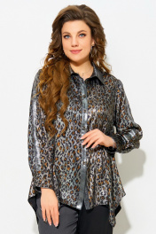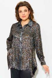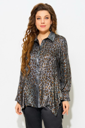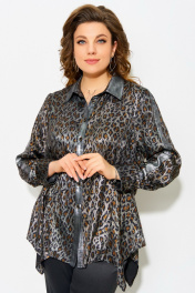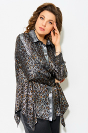 Блуза полуприлегающего силуэта с леопардовым принтом и отделкой из сатина Fita 20641 леопард+серебро