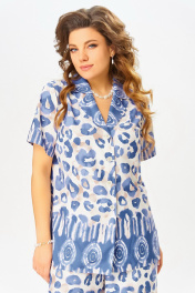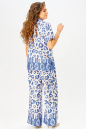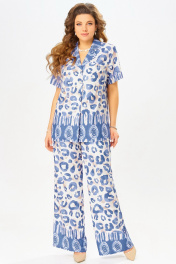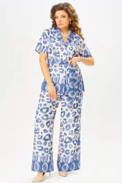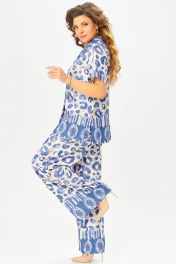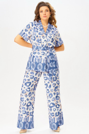 Комплект женский двойка "Изолина" состоит из блузки и брюк, выполнен и сатиновой ткани. Блузка с поясом, прямого силуэта. В блузке однобортная застежка на петли и пуговицы, воротник отложной пиджачного типа с лацканами. Рукава втачные, одношовные, низ рукава обработан швом в подгибку с закрытым срезом. В боковых швах - разрезы. Низ изделия обработан швом в подгибку с закрытым срезом. Брюки прямого силуэта на резинке. В боковых швах - карманы, низ брюк обработан швом в подгибку с закрытым срезом. Модный, стильный и нарядный костюм на все случаи жизни и только для стильных женщин!