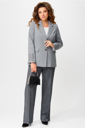 Комплект "Янута" — классика с изысканным штрихом современности Погружение в элегантность начинается с комплекта "Янута" — женской двойки, где утонченность классического стиля тонко сочетается с художественной выразительностью вышивки. Жакет — архитектура формы и утончённости Полуприлегающий силуэт жакета обрамляет фигуру с мягкой строгостью, благодаря подкладке создаётся безупречный комфорт. Однобортная застёжка на петли и пуговицы — отголосок ретро-изящества, подчёркнутая воротником и лацканами пиджачного кроя. Прорезные карманы с листочкой и клапаном не только функциональны, но и служат декоративным акцентом. Втачные двухшовные рукава завершаются магией вышивки — на спинке и по низу, словно тонкая роспись, придающая изделию индивидуальность и художественную глубину. Брюки — лёгкость движения и уверенности Прямой силуэт брюк гармонично балансирует изящество с практичностью. Высококачественная текстильная ткань струится по телу, подчёркивая линию бедра. Пояс оформлен эластичной вставкой по спинке, создавая идеальную посадку и свободу. Карманы на передней части добавляют утилитарную нотку, а подгибка низа — аккуратную завершенность. Трансформируемый стиль "Янута" — это не просто комплект, это дизайнерское откровение, которое легко адаптируется под любой стиль. Жакет и брюки можно носить отдельно, сочетая их с другими элементами гардероба, создавая уникальные образы для разных настроений и случаев. Этот наряд словно говорит: «Я — часть вашего характера, вашего ритма, вашей эстетики».
