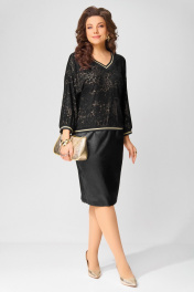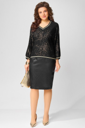 Женский нарядный комплект "Ираида" — гармония текстур и элегантности Комплект "Ираида" — это утонченное сочетание трикотажного джемпера с воздушной сеткой и сатиновой юбки, создающее образ легкости и торжественности. Джемпер свободного силуэта выполнен из мягкого трикотажа с декоративной сеткой. V-образная горловина и манжеты оформлены эластичным довязом, а спущенный рукав придаёт образу расслабленную элегантность. Юбка на подкладке, выполнена из текстильного сатина заужена к низу, подчёркивая линию бедра. Притачной пояс с резинками по бокам обеспечивает комфортную посадку. Застёжка на потайную молнию и пуговицу, шлица по спинке — детали, которые делают модель практичной и изысканной. Комплект можно носить как вместе, так и по отдельности — создавая новые образы для праздников, вечеринок или стильных будней.