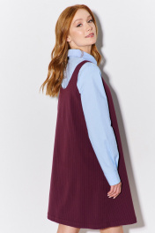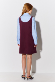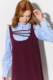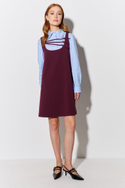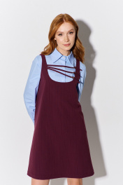 Сарафан прямого силуэта на подкладке. Характеристики: выполнен из плательной ткани в цвете бургунди, по горловине переда обработаны хлястики. Длина по переду 88 см.