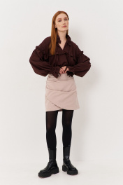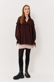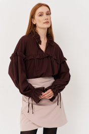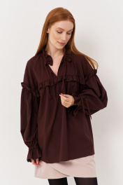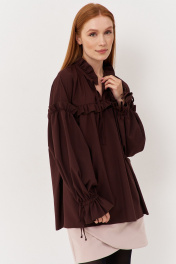Блуза свободного кроя с рюше и сборками из текстиля FLAIM 1123 коричневый