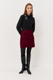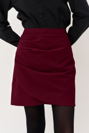 Юбка на запах из костюмной ткани с оборками FLAIM 1124.02 марсала