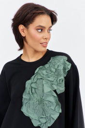 Джемпер, юбка FLAIM 2022 черный-зеленый мох