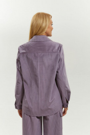 Жакет имеет воротник рубашечного типа на стойке, центральную застёжку на петли пуговицы. Рукав двухшовный с застёжкой на манжете по низу. По переду имеется кокетка и настрочены накладные карманы с клапаном. Спинка имеет отрезную кокетку и средний шов. Низ удлинён по центру и укорочен по бокам. Длина жакета по спинке - 68 см, длина рукава – 61 см.