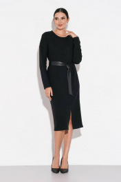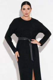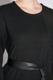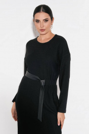 Платье с резинкой и поясом из эко-кожи, асимметричный шов FOXY FOX 1479 черный