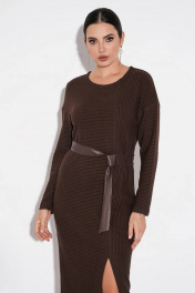 Трикотажное платье полуприлегающего силуэта с асимметричным швом FOXY FOX 1479 коричневый