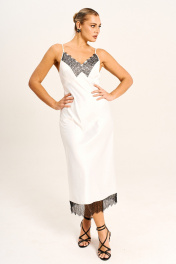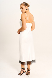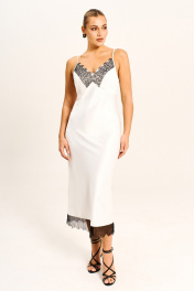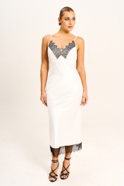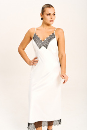 Платье - миди прилегающего силуэта выполнено из струящегося шелк - сатина на регулируемых бретелях и молнией в боковом шве. Подрезы по линии груди и низу платья дополнены мягким французким кружевом, которое держит форму. Платье полностью соответствует заявленному размеру. Пожалуйста, пользуйтесь таблицей замеров готового изделия, чтобы подобрать идеальный размер. Уход за платьем: - при стирке в стиральной машине выбрать бережный либо деликатный режим; -температура воды не выше 30 градусов. ( платье прошло тестовую стирку не линяет).
