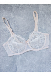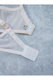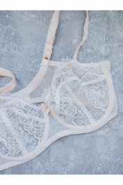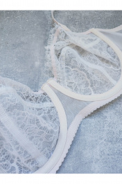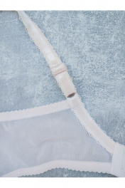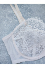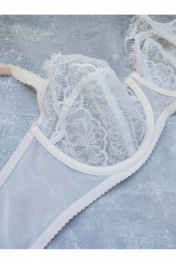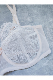 Кружевной бюстгальтер балконет на каркасах, больших размеров. Крой бюстгальтера выполнен с учетом особенностей груди большого размера. Чашка мягкая на каркасах, Т-образный шов приподнимает и округляет грудь. Чашка выполнена из цветочного кружева. Расширенный стан выполнен из плотного функционального трикотажного полотна. U-образное расположение бретелей. Бретели из эластичной ленты с регулировкой по длине. Застёжка сзади на крючки и петли, 2*3 крючка.