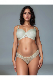 Бюстгальтер кружевной, на каркасах,большой размерной группы. Крой бюстгальтера выполнен с учетом особенностей груди большого размера. Бюстгальтер балконет на дублированной подкладке из тонкого поролона с внутренней подкладкой из хлопка, приподнимает и округляет грудь. Чашка выполнена из цветочного кружева, высокая и закрытая, переходящая в бретель. Классическое прямоугольное расположение бретелей с регулировкой по длине. Расширенный стан выполнен из плотного функционального трикотажного полотна. Застёжка 2*3 крючка.