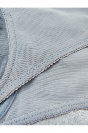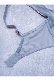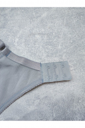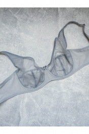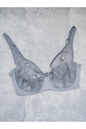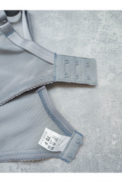 Бюстгальтер прозрачный с мягкой чашкой на каркасах, больших размеров. Изготовлен из сетчатого полотна. Чашка высокая закрытая, с дополнительными поддерживающими деталями по бокам. Бретели широкие усиленные вставками из функциональной сетки. Бюстгальтер выполнен из прозрачного сетчатого полотна, края верха чашки обработаны окантовкой, декоративный бант на ластовице. Верхняя часть чашки однослойная (из прозрачной сетки), нижняя часть двухслойная. Чашка с Т-образным швом приподнимает, округляет и поддерживает грудь большого размера. U-образное расположение бретелей. Бретели из эластичной ленты с регулировкой по длине. Застёжка сзади на крючки и петли, 2*3 крючка.