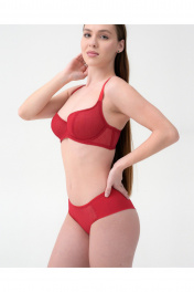 Трусы танга с низкой посадкой. Изготовлены из сетчатого полотна в сочетании с кружвным полотном. Задняя часть - сетка в подгибку. Хлопковая ластовица.