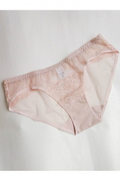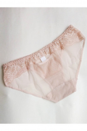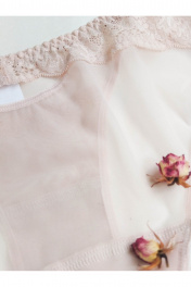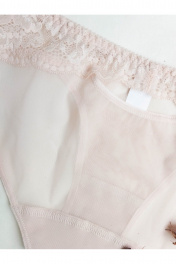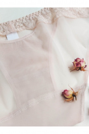 Трусы из прозрачной сетки .Трусы с низкой линией талии. Выполнены из эластичного прозрачного сетчатого полотна в сочетании с кружевом. Комбинация кружевных элементов составляет элегантный рисунок с выемкой на задней части изделия. Хлопковая ластовица.