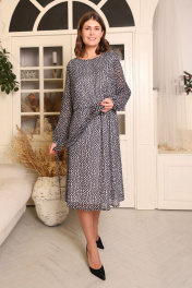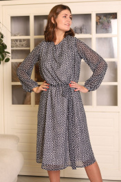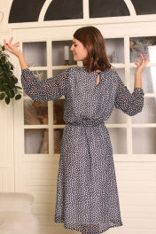 Платье свободное с вшитым поясом, длинными свободными рукавами и рисунком в горошек станет лучшим дополнением вашего гардероба. Стройнит и визуально удлиняет фигуру.