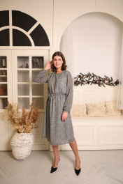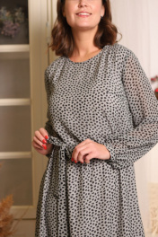 Платье свободное с вшитым поясом, длинными свободными рукавами и рисунком в горошек станет лучшим дополнением вашего гардероба. Стройнит и визуально удлиняет фигуру.