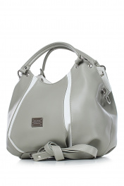 Сумка закрывается на застежку-молнию,с двумя короткими ручками на кольцах,с ручкой-ремнем на карабинах, со складками,передняя стенка состоит из частей разного цвета, с украшением на передней стенке,на задней стенке карман, закрывающийся на застежку-молнию Размеры: 315x230x135