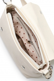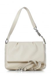 Сумка на одно отделение, закрывающееся на застежку-молнию и клапаном на замок-магнитку, с боковыми держателями, с одним держателем ручки, с одной короткой ручкой из основного материала комбинированной с цепью, со съемной регулирующейся ручкой-ремнем макси Размеры: