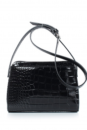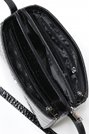 Сумка на одно отделение, закрывающееся на застежку-молнию, с не съемной регулирующейся ручкой-ремнем максимальной длины 1230+-10 мм, с двумя карманами, закрывающимися на застежку-молнию, с украшением на кармане передней стенки. Фурнитура - никель. Размеры: 245x180x95