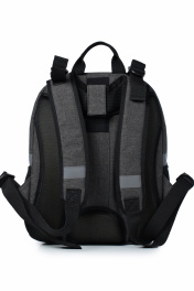 Рюкзак с формованной передней стенкой, на два отделения, закрывающимися на застежку-молнию, с двумя рерующимися плечевыми ремнями максимальной длины 940+-10 мм, с одной короткой ручкой длиной 190+-10 мм, с полужесткой задней стенкой, с мягкими накладками Размеры: 300x370x170