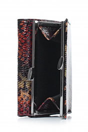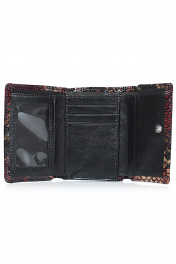 Портмоне закрывается клапаном на кнопку,с карманом на задней части корпуса,закрывающимся на рамочный замок,с обстрочкой края,с краями в загибку. Размеры: 90x115